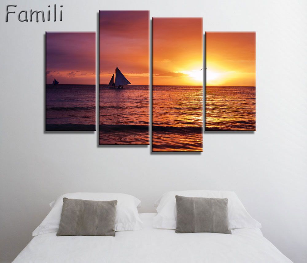 Compre 4 Piezas De Pintura De Lienzo Sin Marco Bote De Vela Pintura Para Sala Arte De La Pared Carteles E Impresiones Cuadros Modernos Decoración A 7,31 € Del Xiaofang8810 | DHgate.Com